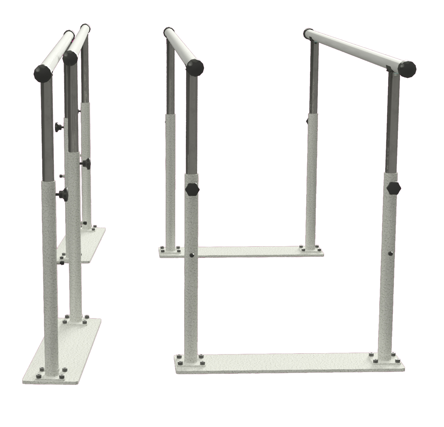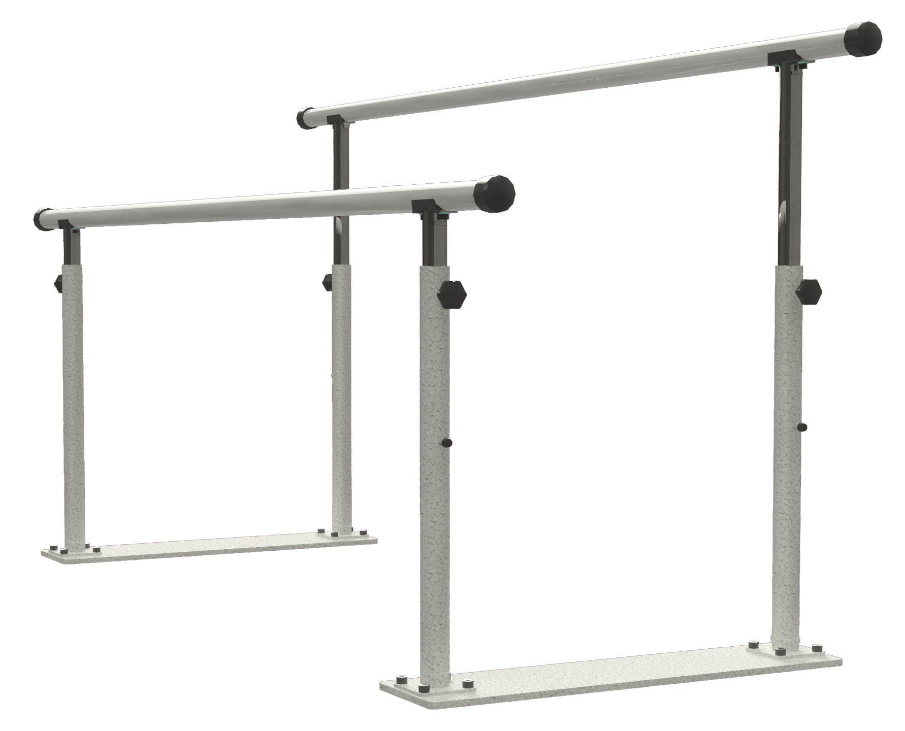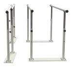 Bases de metálica de 1cm de altura para facilitar el paso. Barra de apoyo de acero recubierta en PVC para un mejor agarre y calidez. Regulable en 4 alturas desde 75 a 99 cm. en tramos de 8 cm. Plegable en cualquier altura. MEDIDAS: Altura regulable de 75 cm a 99 cm. Ancho exterior: 75 cm. Ancho interior: 58 cm. Ancho plegada: 24 cm. Largo funcional: 250 cm. Largo plegada: 304 cm